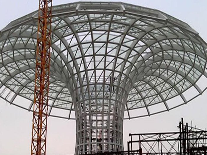 二、球形网架结构因其结构新颖,受力合理,自重轻、用钢量低等优点。如大型体育场馆球形伊犁螺栓球网架、公共场馆球形网架、电厂伊犁螺栓球网架、水泥工业球形网架、仓储物流球形网架、伊犁干煤棚工业球形网架、伊犁收费站伊犁加油站球形网架、展览中心、影剧院、商场、航站楼、候车厅、工厂伊犁车间、仓库、电视塔等球形螺栓球节点网架。国内球形网架结构主要分为:伊犁焊接球节点网架及螺栓球节点网架两种。螺栓球节点网架其构件工厂内加工量较大,现场安装便捷,适用于现场工期紧,伊犁施工条件、用电量受制约,网架形状复杂、伊犁杆件定位困难的异形结构。螺栓球节点球形网架系统基本由伊犁杆件、螺栓球、支撑支座等组成。按照节点形式可分为交叉伊犁桁架体系、四角锥体系、三角锥体系等。支撑方式多为固定支座支撑。对于大面积、大跨度及有特殊受力或伸缩要求的网架结构可采用橡胶支座、滑移支座、球铰支座等支撑形式,以满足结构自身的受力稳定、均衡,便于内力释放等设计要求。